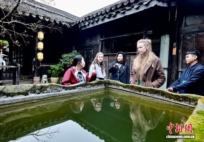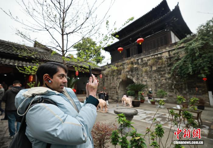 图为东北财经年夜教邦际商务教院研讨死爱德华正在陌头检查昭化古乡环境原料。中新社记者 王磊 摄