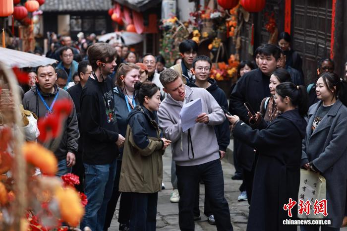 图为东北财经年夜教邦际商务教院研讨死爱德华正在陌头检查昭化古乡环境原料。中新社记者 王磊 摄
